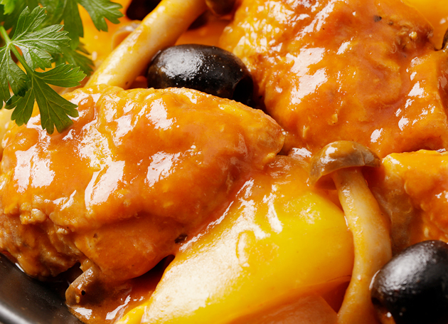 - 鶏肉は1枚を4~5等分程、少し大きめに切り、軽く塩、こしょうで下味をつける。玉ねぎ、パプリカは一口大の乱切りに、しめじは小房に分ける。